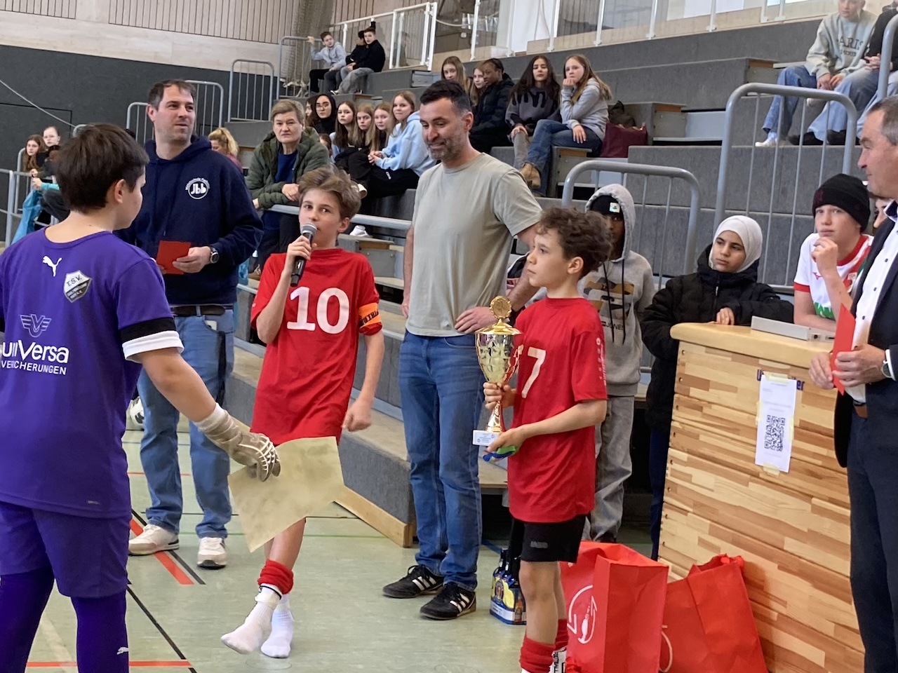Am vergangenen Mittwoch fand in der Sporthalle in Dießen ein spannendes Hallenfußballturnier mit insgesamt acht Mannschaften statt. Die Zuschauer sahen viele packende Spiele, schnelle Kombinationen und große Einsatzbereitschaft auf dem Spielfeld. Unsere Mannschaft startete sehr erfolgreich in die Vorrunde. In den drei Gruppenspielen zeigte das Team eine starke Leistung und konnte alle Spiele für sich entscheiden. Mit drei Siegen zog die Mannschaft souverän als Gruppensieger ins Halbfinale ein. Das Halbfinale entwickelte sich zu einem echten Krimi. Beide Teams lieferten sich ein ausgeglichenes Spiel mit guten Chancen auf beiden Seiten. Nach der regulären Spielzeit stand es unentschieden, sodass die Entscheidung im Sieben-Meter-Schießen fallen musste. Hier bewiesen unsere Spieler starke Nerven: Mit präzisen Schüssen und einer großen Portion Glück konnte das Team das Duell für sich entscheiden und den Einzug ins Finale feiern. Im Finale wartete erneut ein starker Gegner. Doch unsere Mannschaft blieb konzentriert und kämpfte um jeden Ball. Schließlich gelang der entscheidende Treffer zum 1:0. Die Defensive hielt bis zum Schlusspfiff stand, sodass der knappe Vorsprung verteidigt werden konnte. Mit diesem Sieg krönte sich das Team zum verdienten Turniersieger und sicherte sich den 1. Platz und damit einen Geldpreis und einen Wanderpokal. Die Freude bei den Spielern war entsprechend groß. Das Turnier wird allen Beteiligten sicher noch lange in guter Erinnerung bleiben.