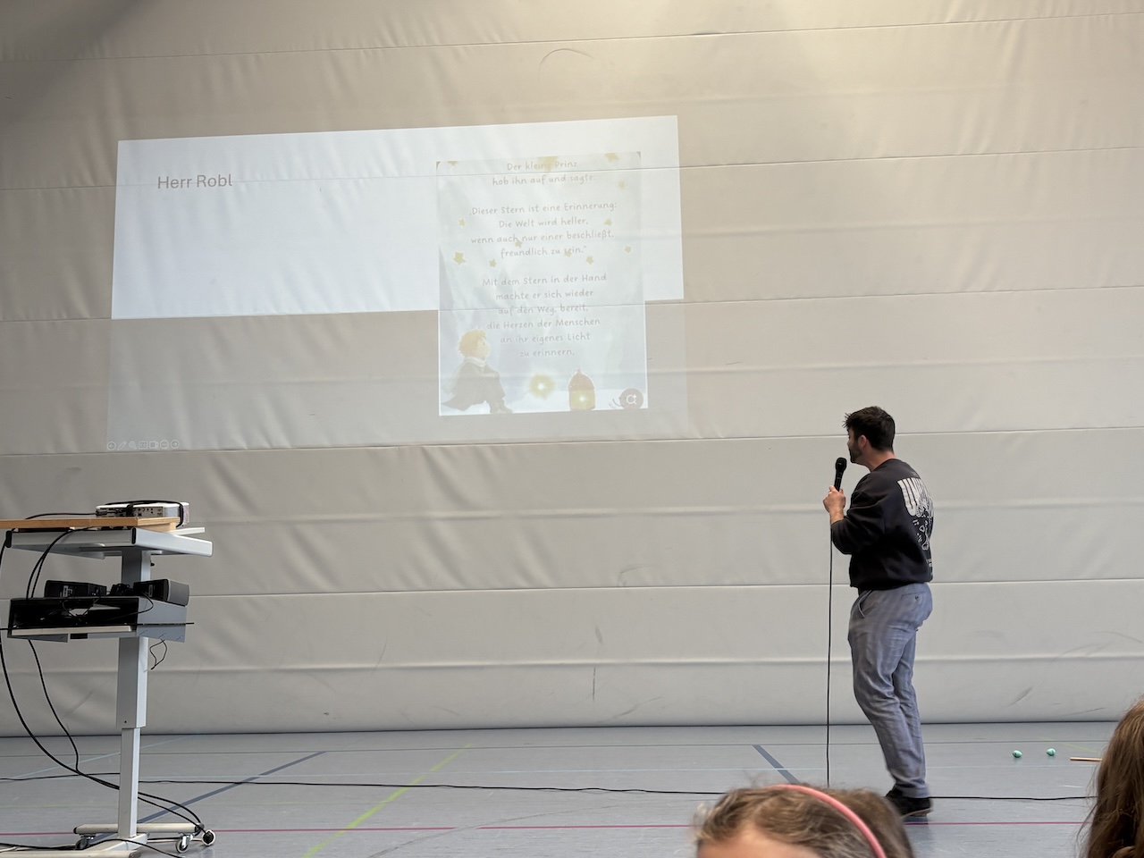 Zu Beginn bekamen zwei Talente aus der Klasse 1b eine Bühne. Da unsere Veranstaltung „Weil ich es kann“ dieses Jahr leider nicht stattfinden kann, möchten wir unseren Schülerinnen und Schülern bei den Vollversammlungen eine Möglichkeit geben, ihre besonderen Fähigkeiten zu zeigen.